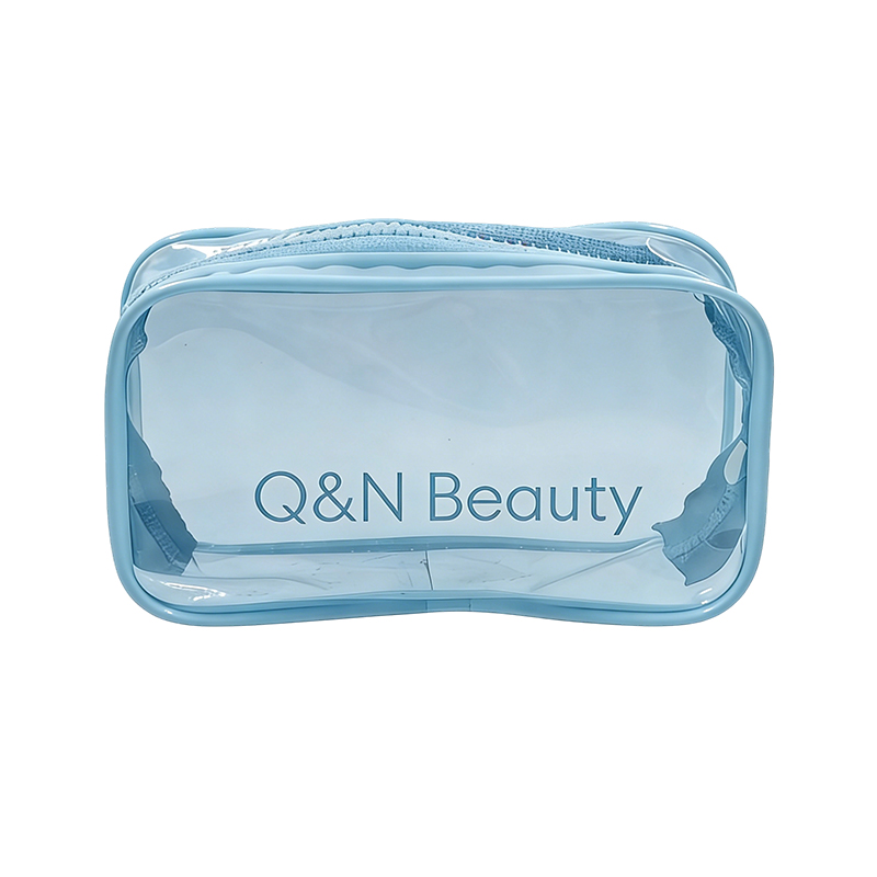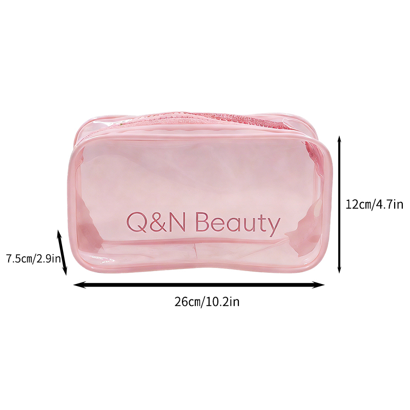 Designed for effortless visibility and quick access, this clear PVC pouch keeps your travel essentials neatly organized while letting you see everything at a glance. The structured, boxy silhouette offers practical capacity for skincare bottles, toiletries, and daily makeup, while the gusseted base helps it stand upright in a suitcase, bathroom counter, or carry-on. Finished with reinforced binding and a secure top zipper, it’s a clean, modern solution for travel routines—perfect for packing liquids, separating items, and keeping spills contained with an easy-to-wipe surface.