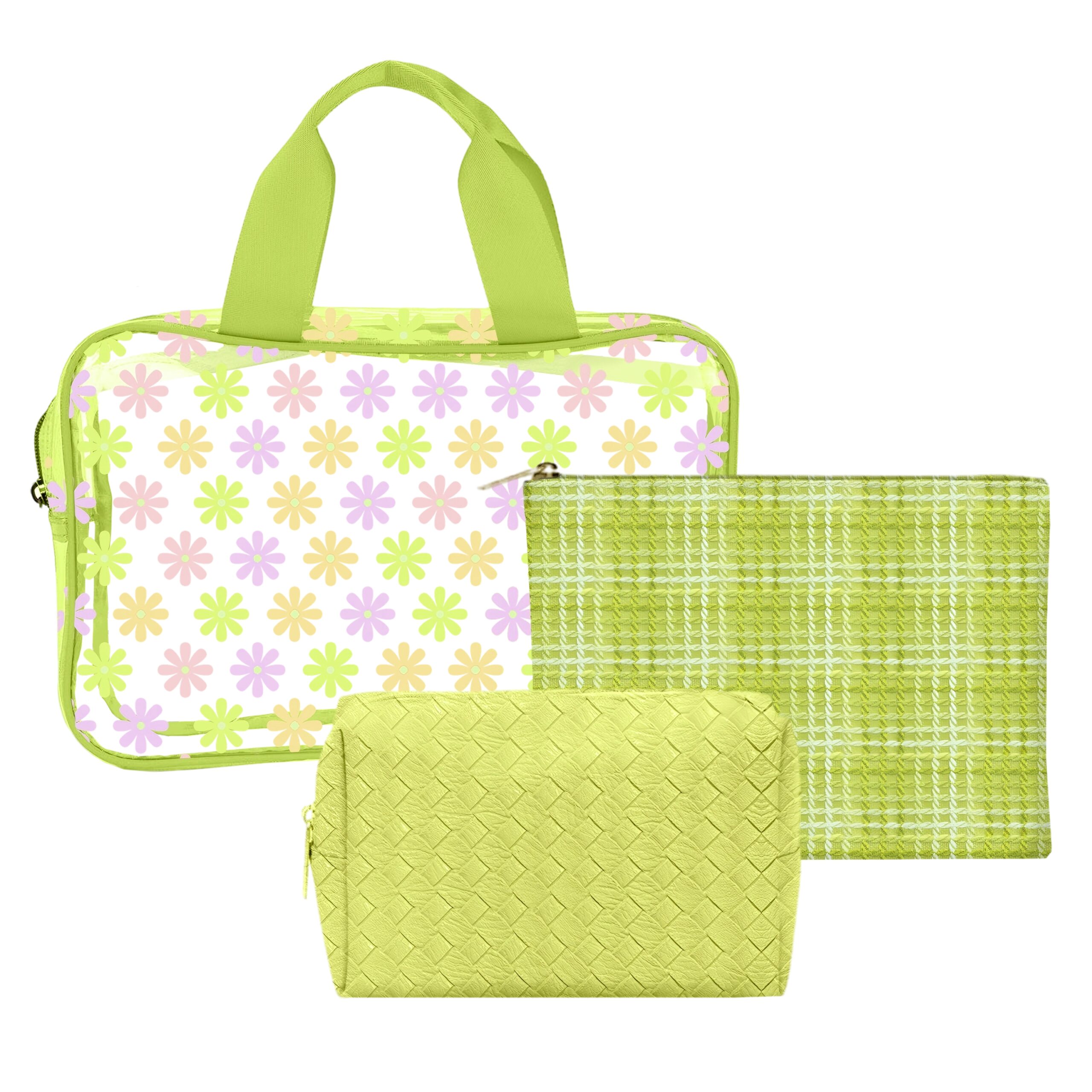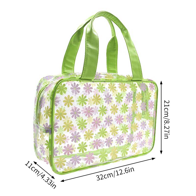 With a cheerful floral print and clean green trim, the outer case delivers a bright retail look, and the inner pouches add both flat storage and 3D capacity for bulkier items. Finished with reinforced binding for shape retention and smooth zippers for secure closure, it’s ideal for travel, gym routines, or everyday vanity organization.