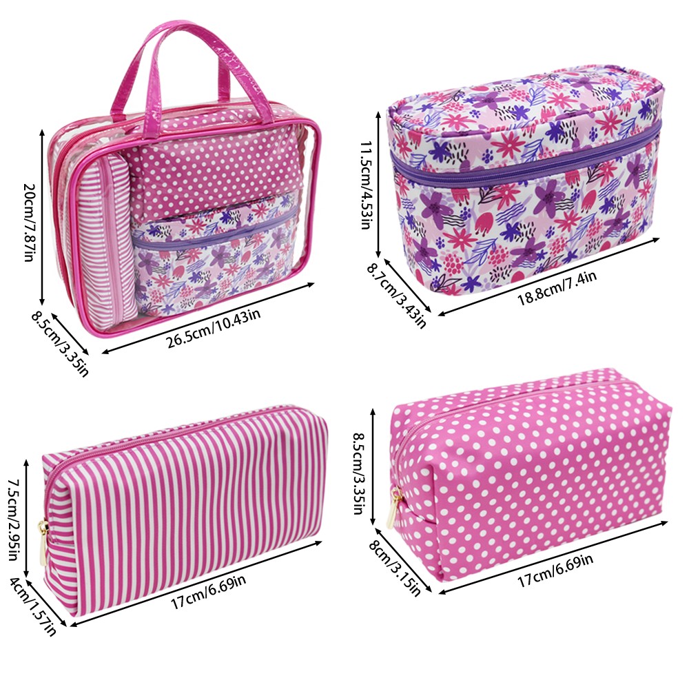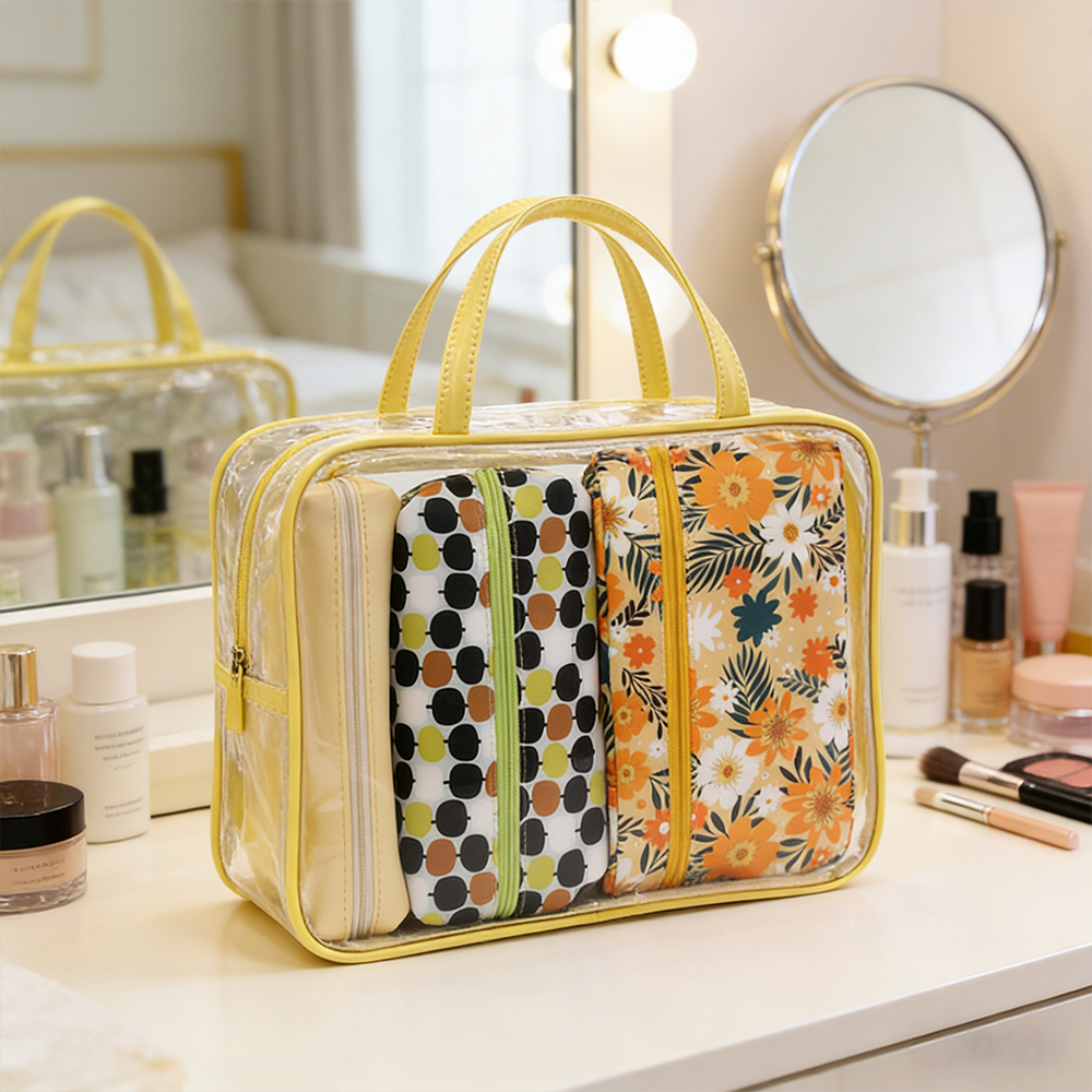With reinforced piping for better shape retention and sturdy top handles for easy carry, this set moves smoothly from bathroom counter to suitcase. Bright, playful prints add a fun retail look while the wipe-clean PVC exterior keeps maintenance simple—ideal for weekend trips, gym routines, or daily storage.