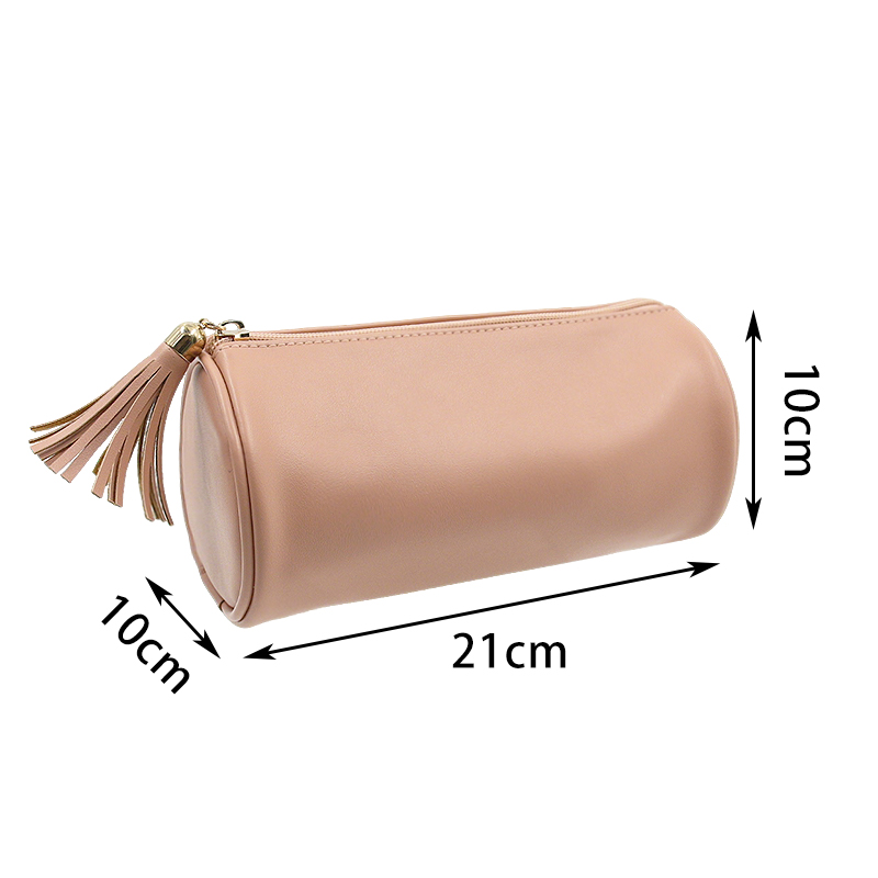 Designed with a clean, minimalist look, this flat-grain barrel pouch offers a sleek silhouette with practical capacity. The cylindrical shape maximizes space while keeping the bag compact—ideal for organizing daily essentials without taking up too much room in your tote or luggage.