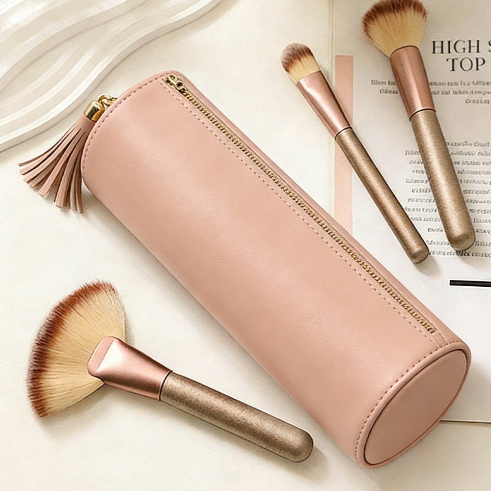 Makeup brushes, lipsticks, mascara, skincare minis, pens, small accessories, travel essentials.