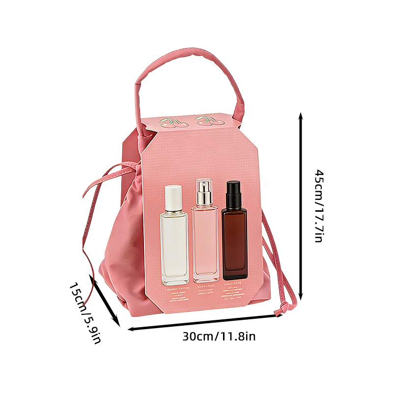 Designed to upgrade product presentation, this drawstring gift-set bag combines a soft fabric pouch with a structured, eye-catching front panel to showcase your skincare, fragrance, or personal care collection. The tall, spacious silhouette fits multiple bottles and boxed items comfortably, while the wide bottom gusset helps it stand neatly on shelves or countertops. A smooth drawstring top keeps contents secure, and the padded carry handle makes it easy to grab for gifting, travel, or in-store promotions. Offered in multiple colorways and graphic styles, it’s a flexible packaging solution that looks premium and stays practical.