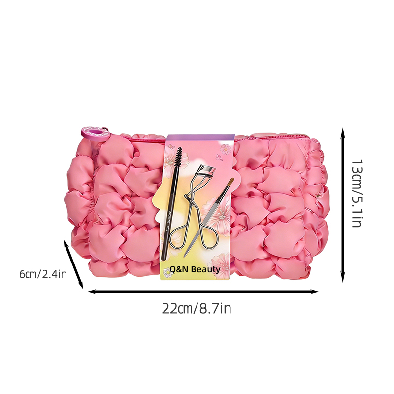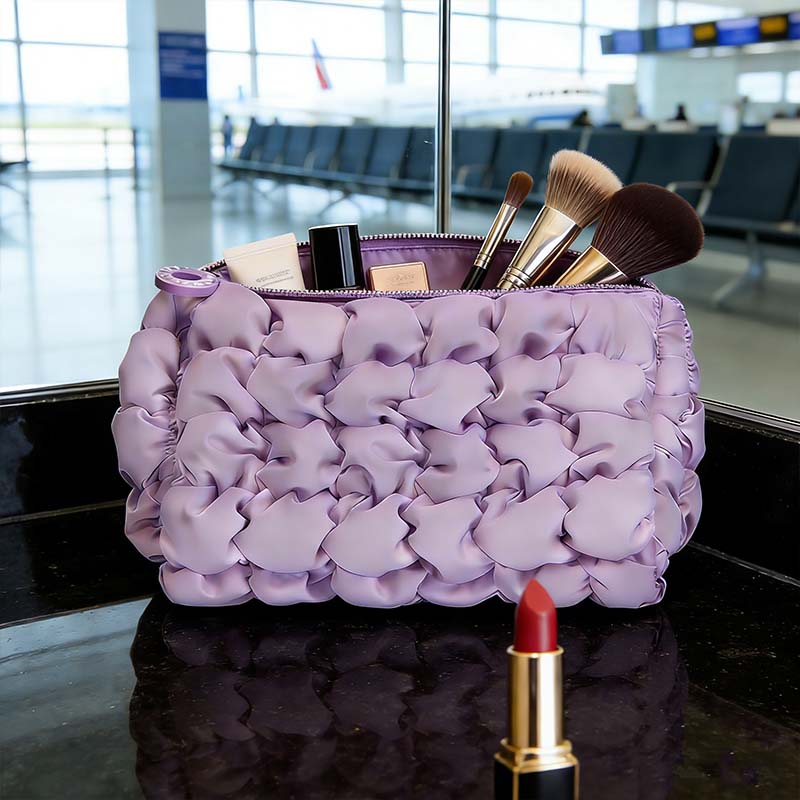 Cute, bold, and surprisingly roomy—this puffy petal makeup pouch turns everyday storage into a statement piece. The 3D padded texture creates a soft, cushioned silhouette that helps protect cosmetics while keeping the bag lightweight for travel. A wide top zipper opening makes it easy to grab essentials quickly, and the structured-yet-plush body holds its shape even when packed. Perfect for tossing into a tote, carry-on, or keeping on your vanity as a fun pop of color.