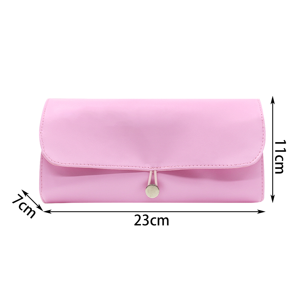 The wide flap cover helps shield brushes and small items from dust and rubbing, while the snap button closure keeps everything secure on the go. With its slim profile and soft rounded shape, it fits effortlessly into handbags, backpacks, or suitcases—perfect for quick touch-ups, business trips, or everyday organization.