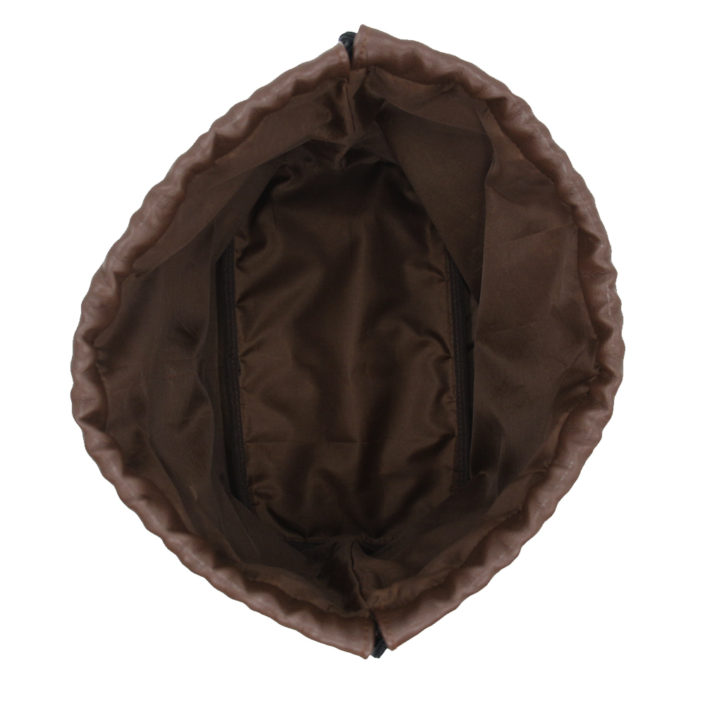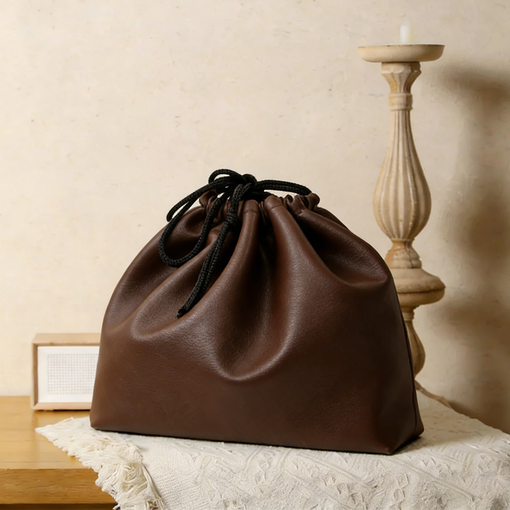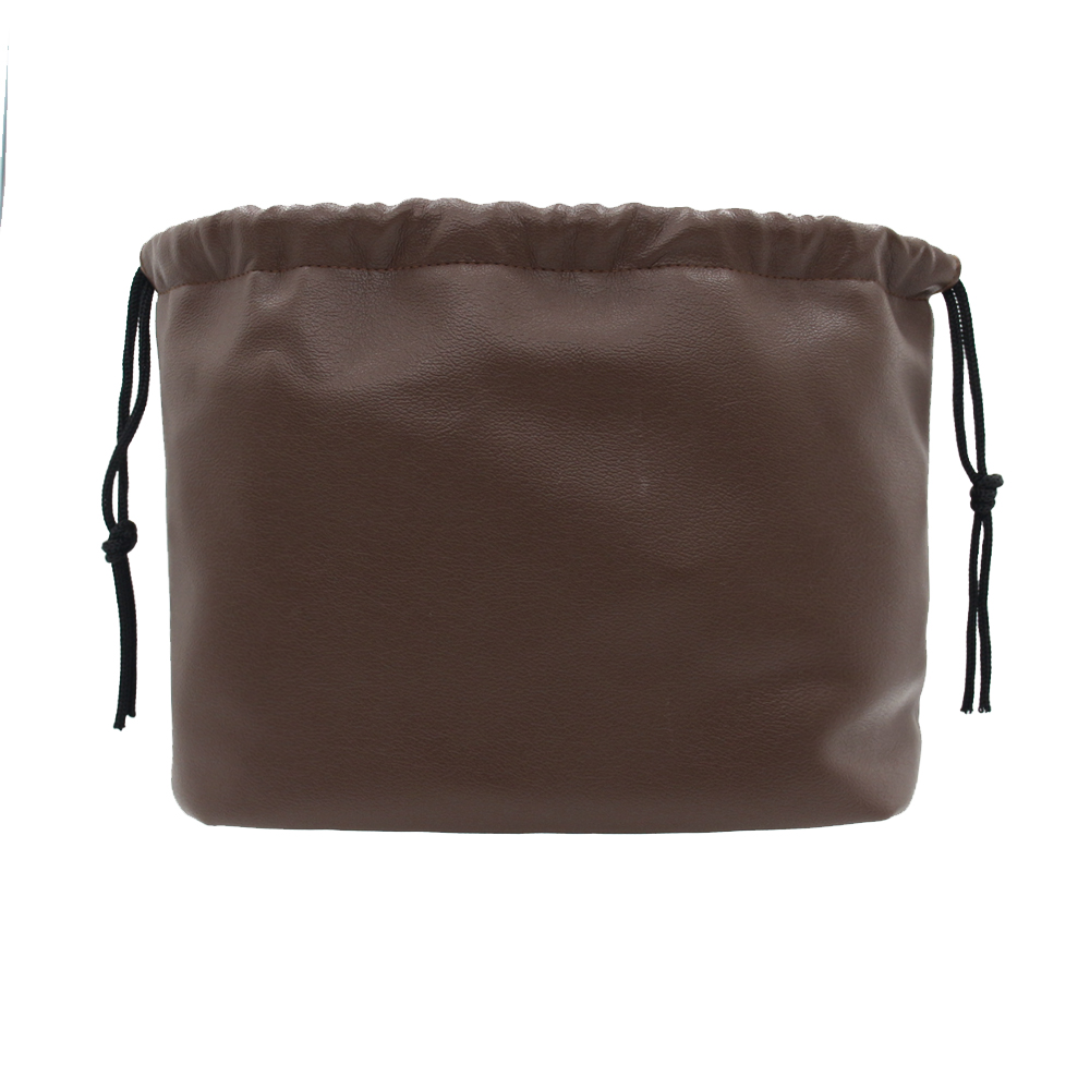 Designed for easy, grab-and-go organization, this large drawstring pouch features a soft PU exterior with a roomy bucket silhouette that expands as you pack. The wide top opening makes it quick to load and access daily essentials, while the drawstring cord tightens smoothly to keep items secure. Inside, a clean-lined fabric lining and an internal zip pocket help separate smaller items like keys, cards, or accessories—ideal for travel packing, tote organization, or keeping essentials together at home.