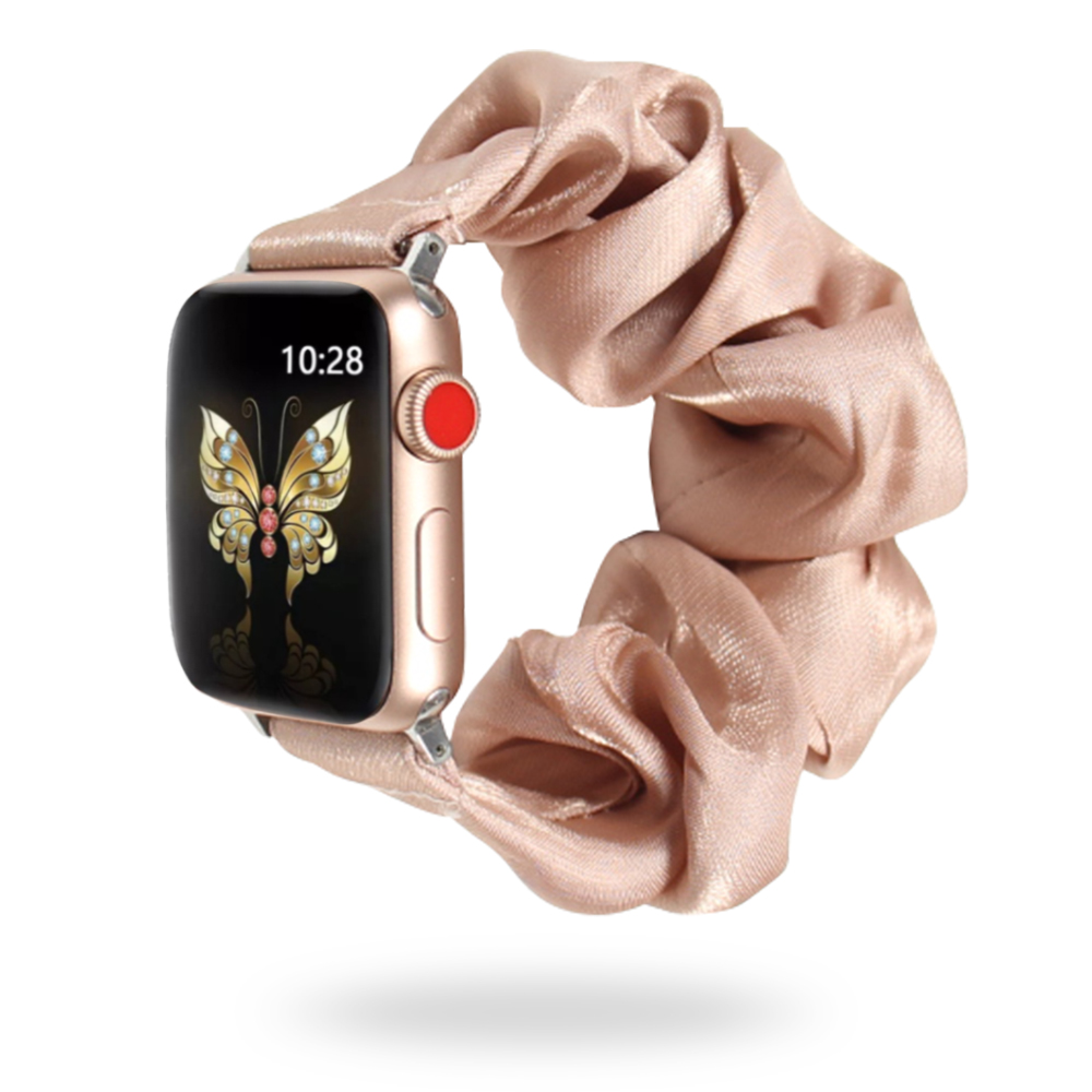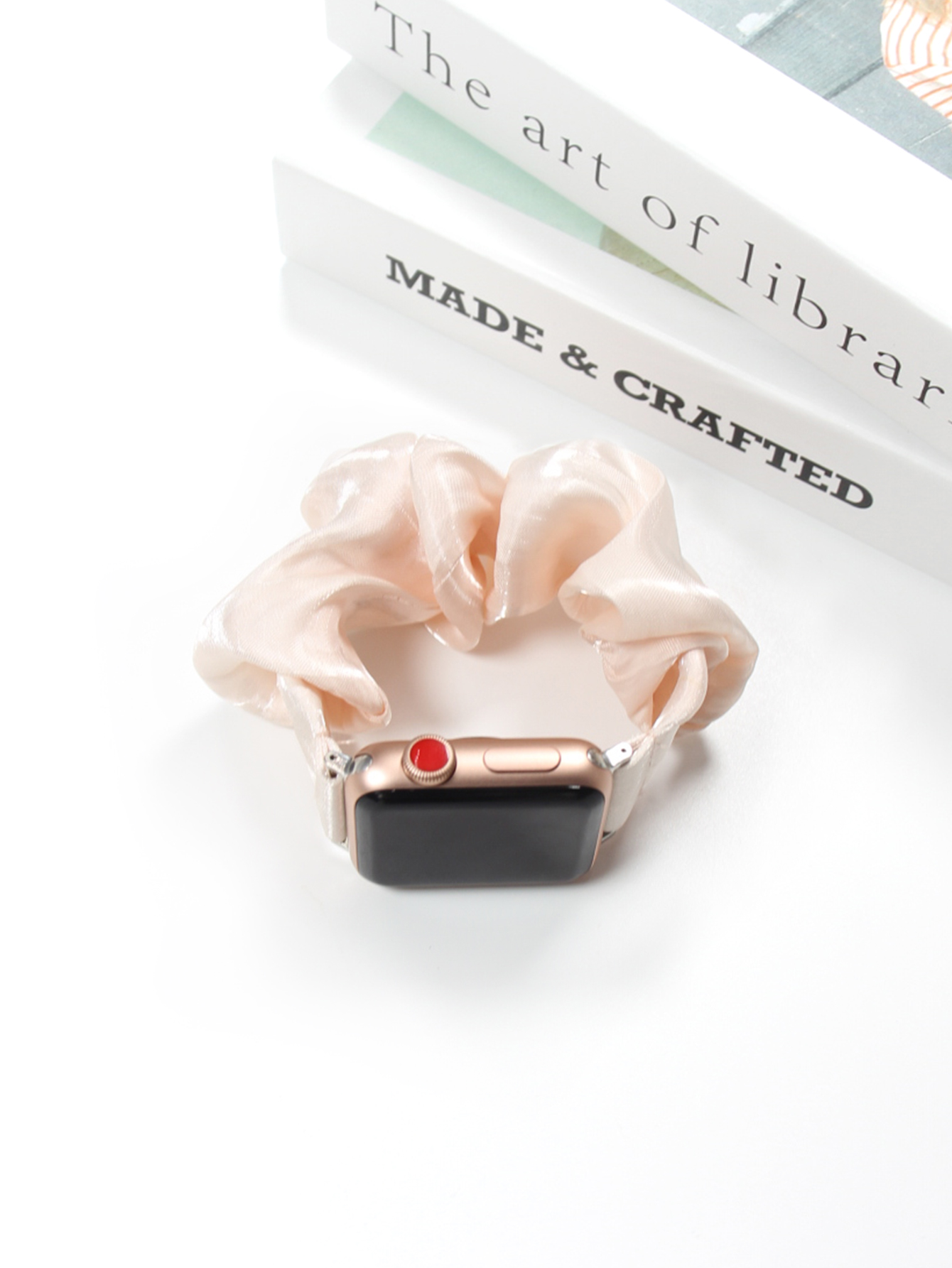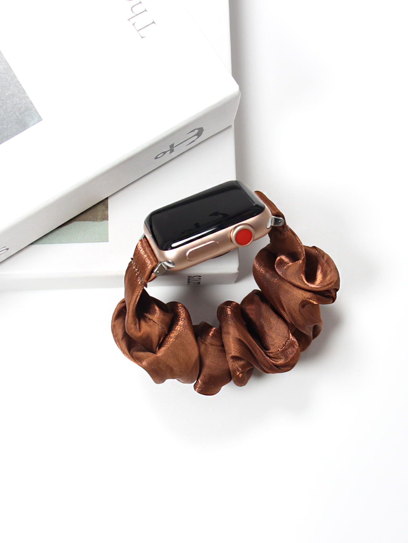 Designed with a soft, feminine aesthetic, this satin scrunchie watch band offers a stylish and comfortable alternative to traditional watch straps. The ruched satin fabric creates a textured, voluminous look that feels lightweight yet durable, while the elasticated inner band ensures a snug, flexible fit on your wrist. The smooth, shiny satin surface gives it a luxurious, easy-to-clean finish, and the silver-tone metal connectors provide a secure attachment to your Apple Watch. Finished with a playful scrunchie design, it adds a soft, elegant touch to an otherwise modern, functional accessory—perfect for everyday wear, special occasions, or travel.