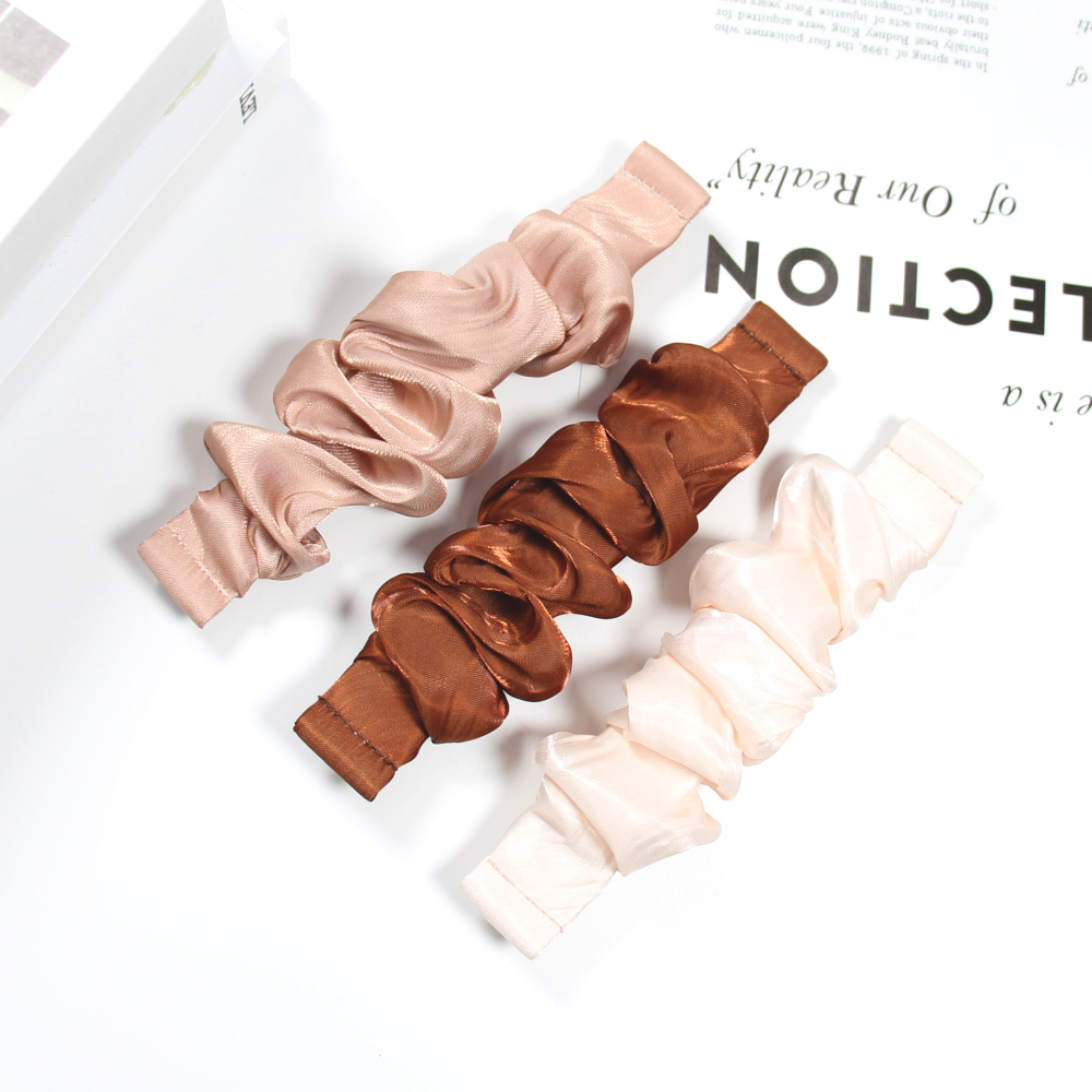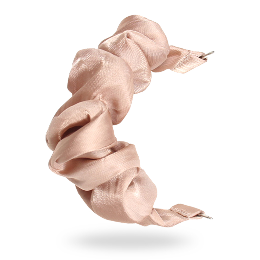 - Structure: Scrunchie-style main band with integrated metal connectors