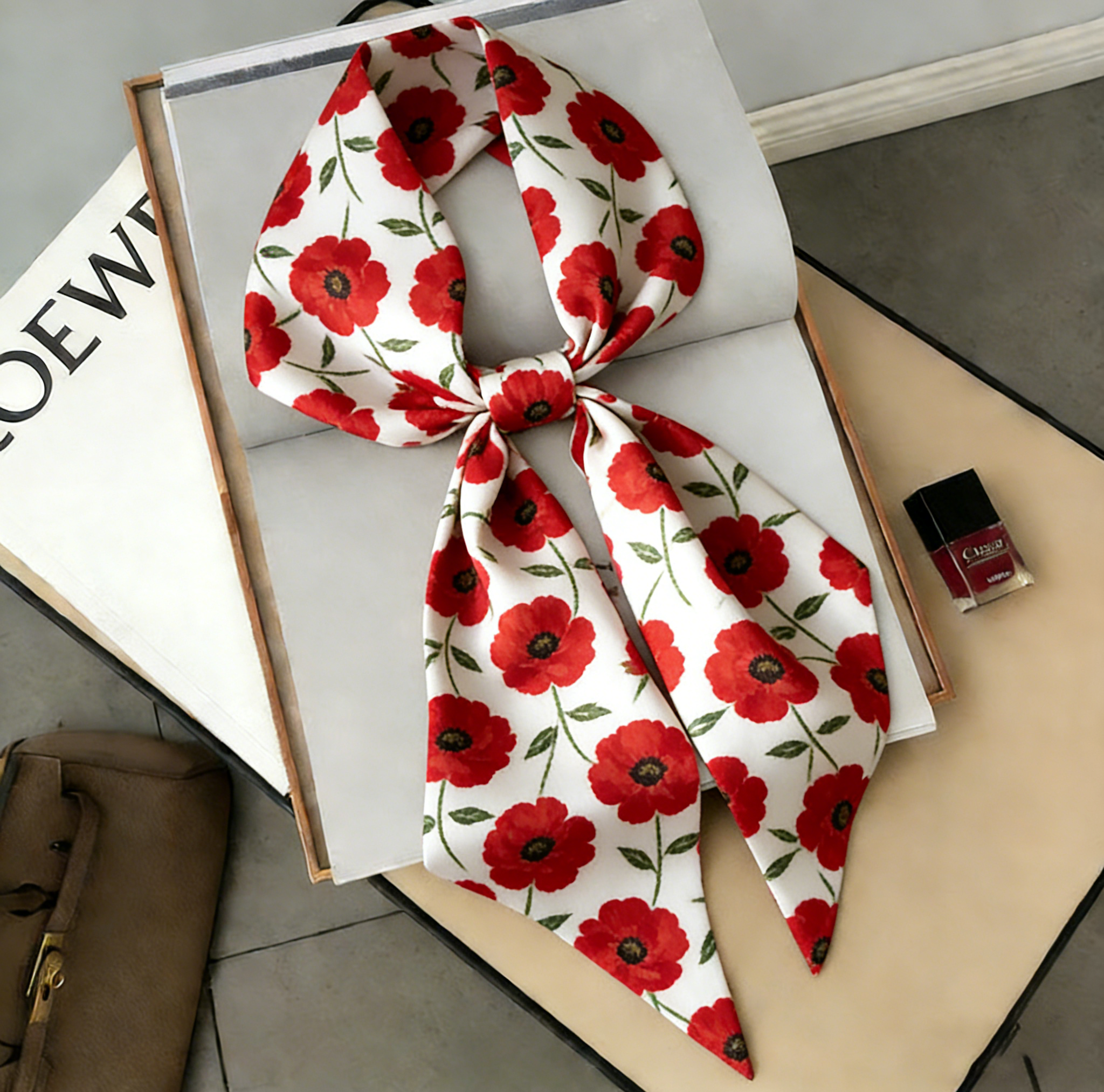 Bag handle wrap, hair bow, ponytail tie, headband styling, neck accent, wrist tie, gifting add-ons.