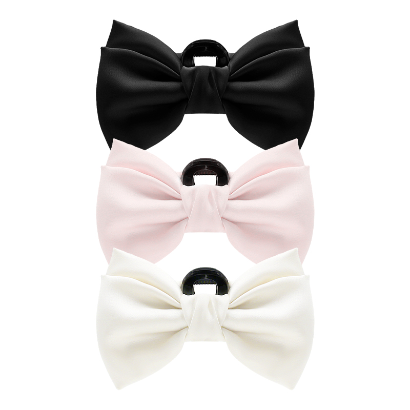 • Structure: Oversized double-layer bow + center wrap + back claw clip