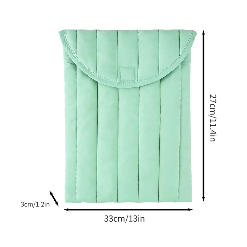 Designed with a playful, quilted aesthetic, this envelope-style sleeve offers a soft, protective silhouette with charming design options. The padded, quilted structure cushions your device while keeping the bag lightweight—ideal for safeguarding laptops or tablets without adding bulk to your tote or backpack. The water-resistant nylon surface gives it a durable, easy-to-clean finish, while the Velcro flap closure keeps your device secure on the go. Available in cheerful daisy prints, playful polka dots, delicate floral patterns, and solid pastels, it adds a fun, stylish touch to an otherwise functional design—perfect for commuting, travel, or everyday use.