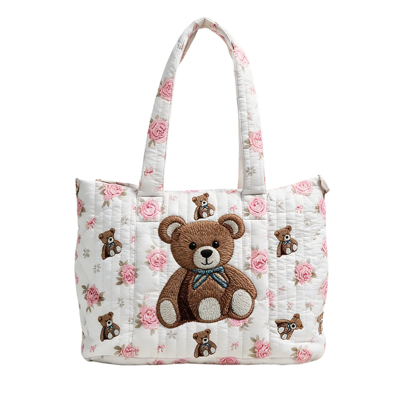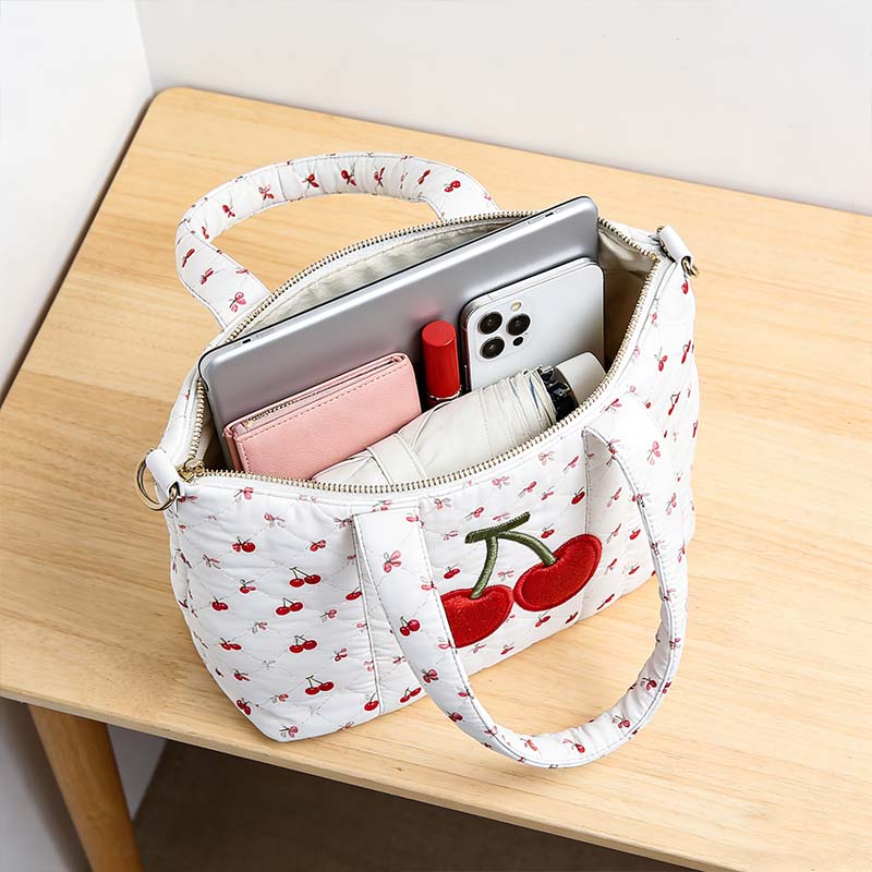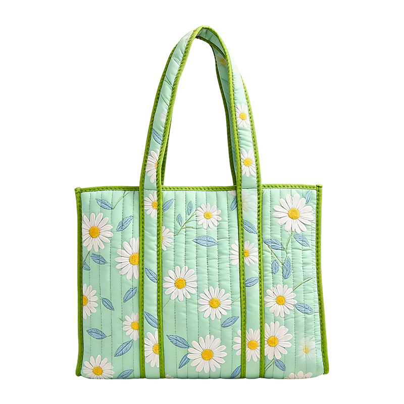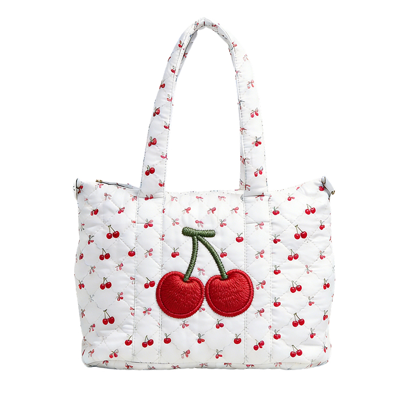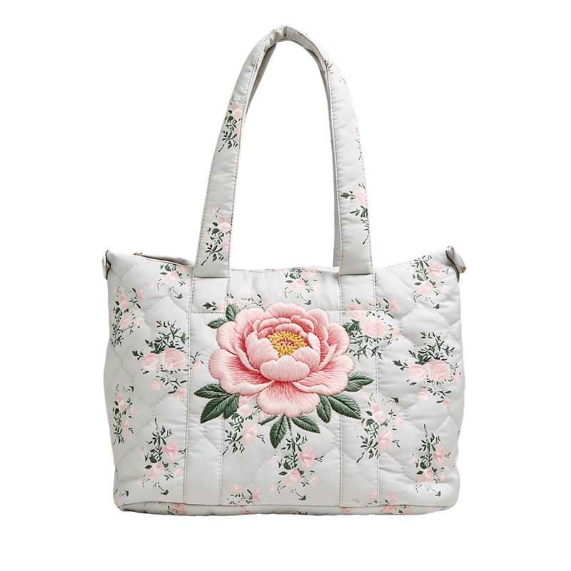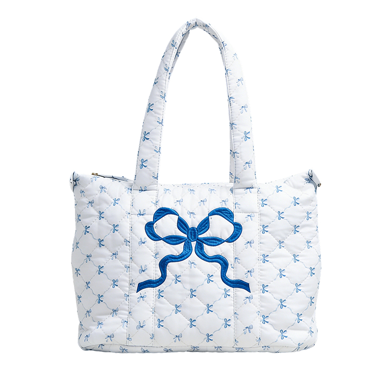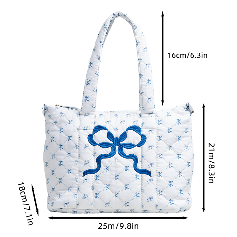 Designed with a charming, feminine aesthetic, this quilted tote bag offers a soft, protective silhouette with playful design details. The padded, quilted structure creates a textured, voluminous look that feels lightweight yet durable, while the dual shoulder straps ensure comfortable, hands-free carry. The smooth quilted nylon surface gives it a durable, easy-to-clean finish, and the top zipper closure (on select designs) keeps your items secure on the go. Finished with delicate floral prints, embroidered bow appliqués, or contrasting edge piping, it adds a sweet, stylish touch to an otherwise modern, functional design—perfect for commuting, travel, or everyday use.