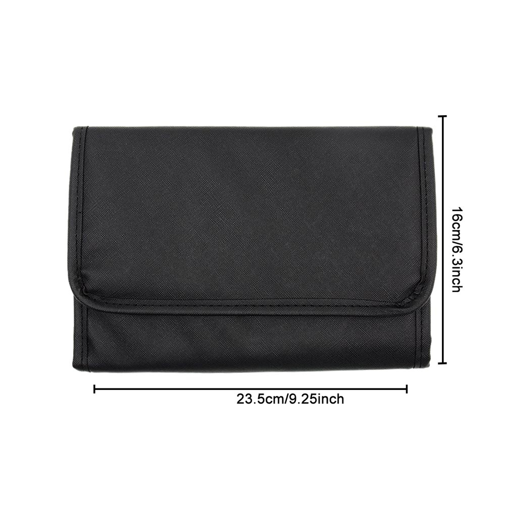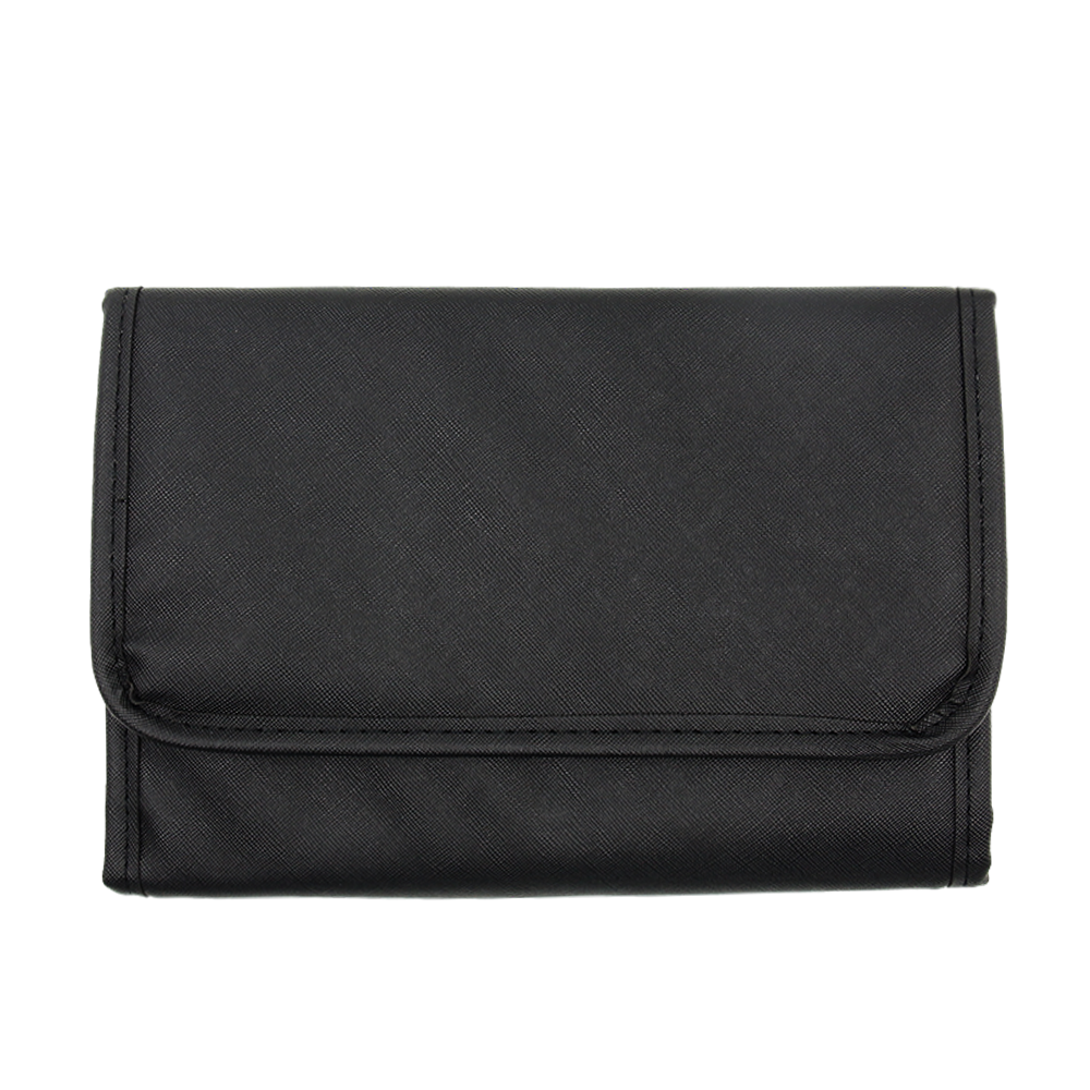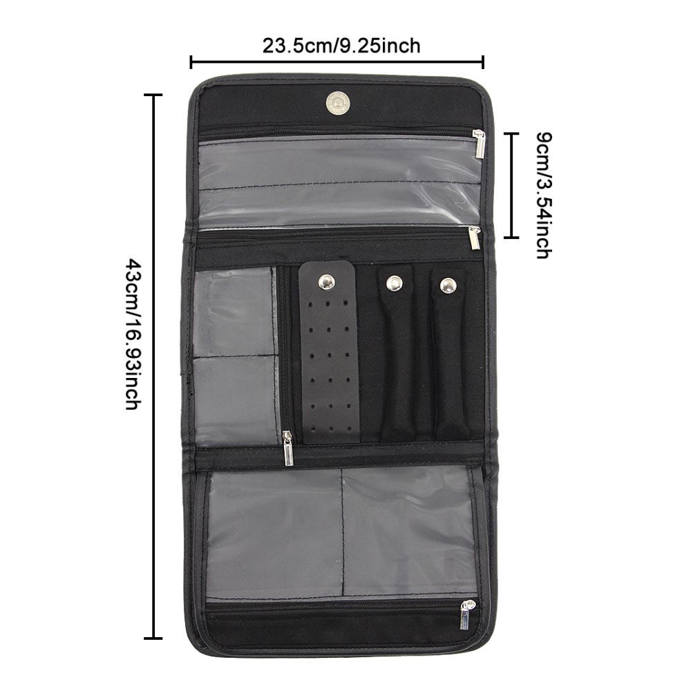 Designed with a professional, organized aesthetic, this foldable tool organizer offers a compact, structured silhouette with exceptional storage capacity. The tri-fold design maximizes space while keeping the bag portable—ideal for organizing beauty tools, jewelry, or small accessories without taking up too much room in your tote or luggage. A durable crosshatched nylon surface gives it a water-resistant, easy-to-clean finish, while the snap button closure keeps items secure on the go. Finished with clear PVC pockets, brush slots, and an earring holder panel, it adds a practical, organized touch to an otherwise modern, functional design—perfect for professional use, travel kits, or everyday carry.